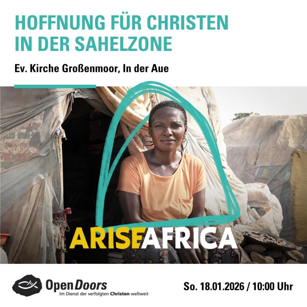 Religionsfreiheit ist ein hohes Gut unserer deutschen Verfassung. Doch in vielen Staaten unserer Welt wird dieses Grundrecht mit Füßen getreten. Darunter leiden Christen in aller Welt als am stärksten verfolgte und bedrohte Minderheit(insges. an die 400 Mio. Menschen). Das internationale Hilfswerk für verfolgte Christen, OPEN Doors, hebt deren Lebens- und Glaubenssituation stetig ins Bewusstsein, klärt auf, unterstützt Mitchristen mit Gebet und Tat.