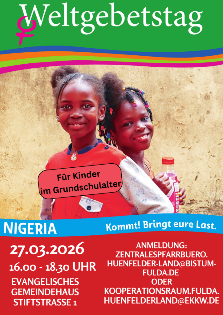 16:00 Uhr Ökum. Kinderbibeltag zum Weltgebetstagsland Nigeria im ev. Gemeindehaus in Hünfeld
