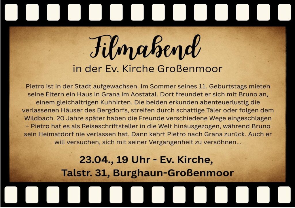 19 Uhr Filmabend in der Ev. Kirche Großenmoor
